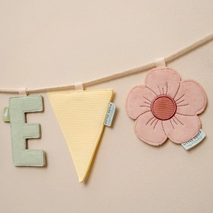 Sin duda una decoración perfecta para la habitación del bebé o niño/a. Las guirnaldas de Little Dutch están fabricadas con suaves telas y en colores pastel. Tenemos disponibles letras (AZ), números (0 – 10) y una serie de bonitos adornos y banderines en diferentes colores a juego, para crear una guirnalda muy especial.