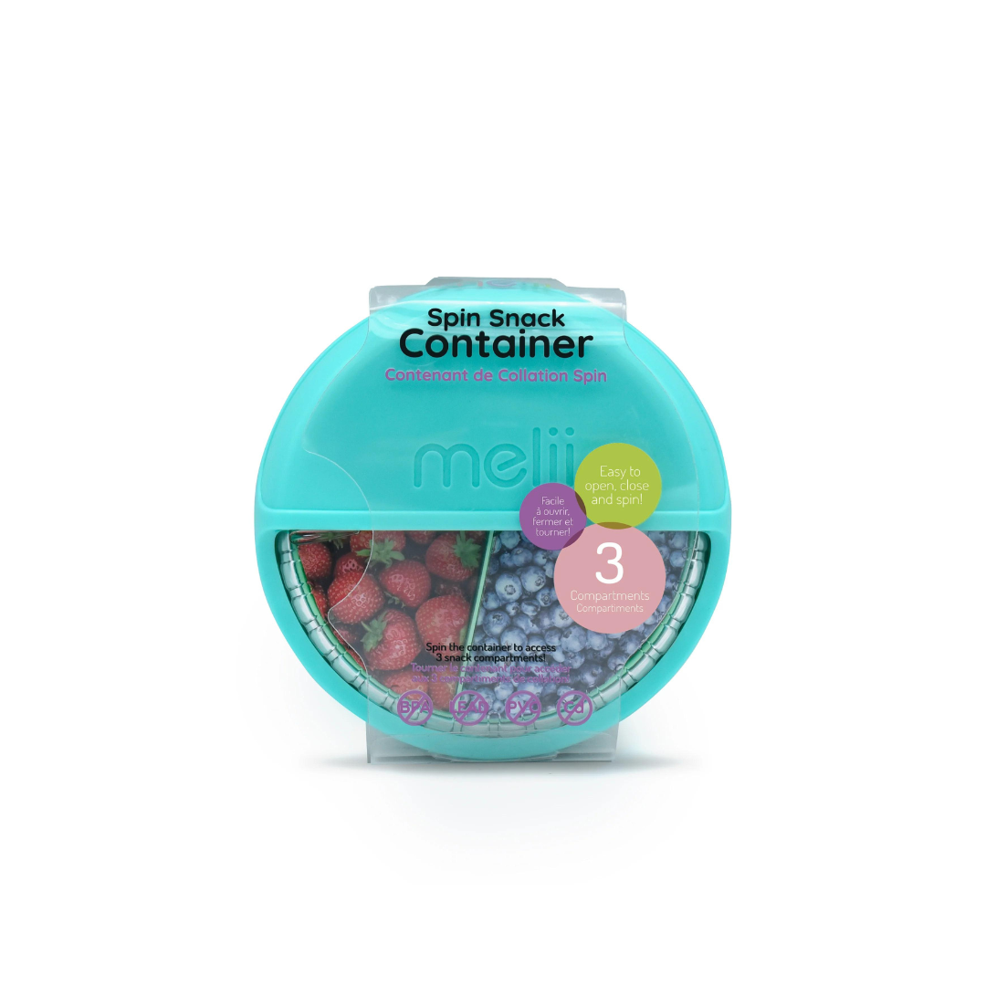 - Ventana Transparente de Fácil Acceso: Diseñado para la máxima comodidad, el Melii Spin Container tiene una ventana transparente que se abre fácilmente, permitiendo a los niños elegir su snack favorito sin esfuerzo.