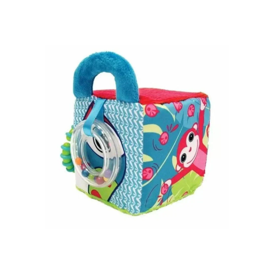 Fabricado con materiales suaves y de diferentes texturas, este cubo ofrece una experiencia sensorial completa que invita a explorar, tocar y descubrir nuevos sonidos y formas. Es ideal para activar la motricidad fina y la coordinación mano-ojo mientras tu bebé juega y aprende.