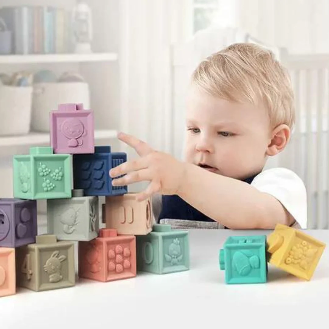 Agrega un toque de diversión y aprendizaje al tiempo de juego de tu bebé con estos encantadores cubos de colores pastel. Perfectos para pequeñas manos, estos cubos blandos están decorados con atractivas ilustraciones tridimensionales de animales, frutas, formas y números, diseñados para capturar la atención de los niños y estimular su desarrollo cognitivo.