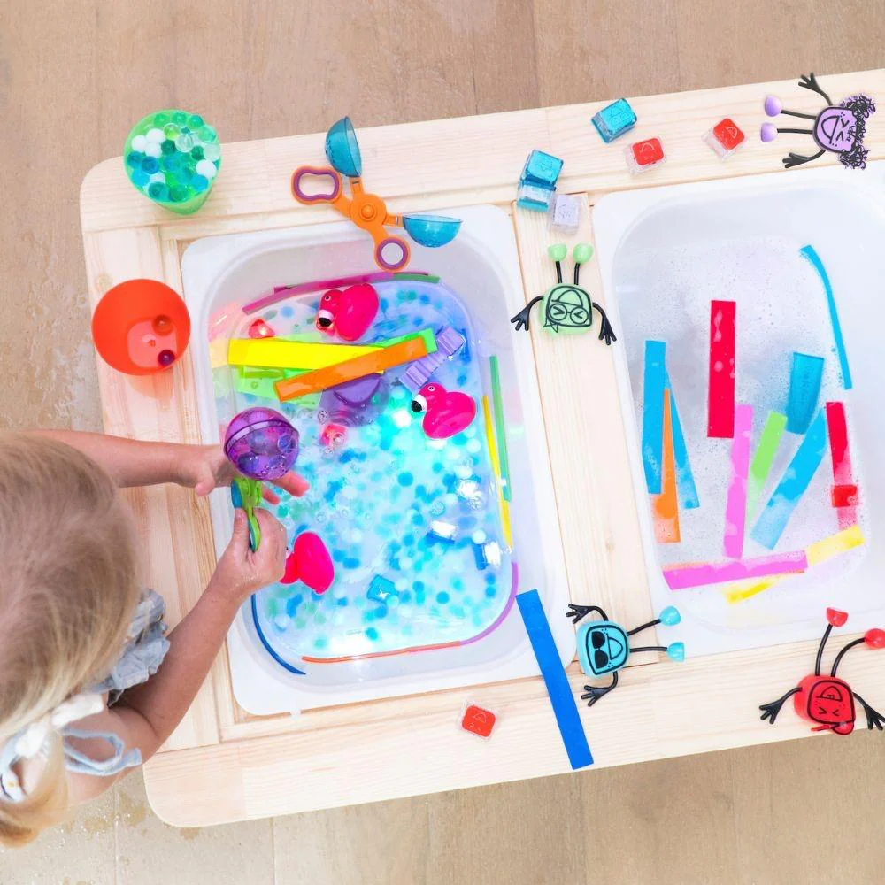 Además de ser juguetes para el baño, los Glopals® ofrecen infinitas oportunidades educativas para aplicaciones sensoriales. Sus propiedades activadas por líquido generan una sensación de asombro y asombro mientras los niños experimentan su resplandor colorido. Puedes optar por usar los cubos iluminados por sí mismos o insertarlos en la parte posterior de tu Pal de color similar para darle vida.