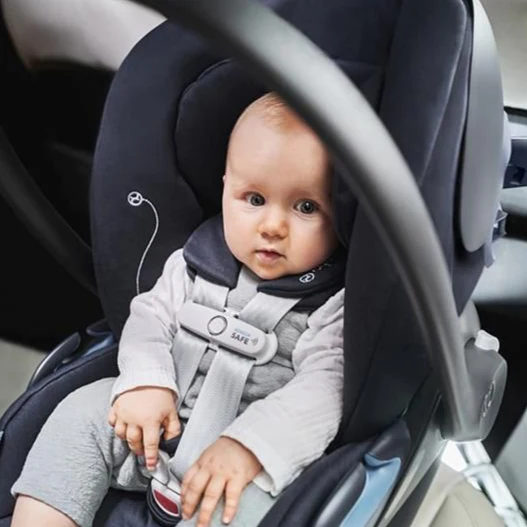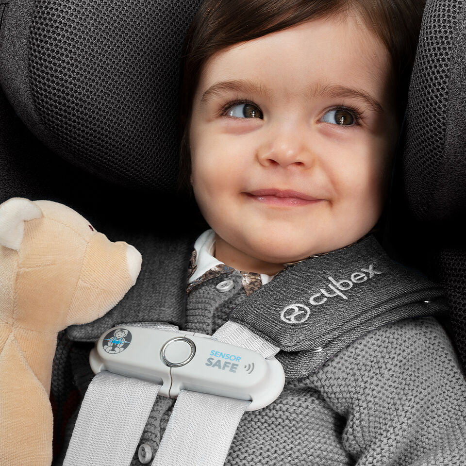 SensorSafe™ es el clip de pecho inteligente de CYBEX que se instala en el arnés de la silla de auto y se conecta a tu smartphone para enviarte alertas en situaciones potencialmente peligrosas. Diseñado para aportar tranquilidad en cada trayecto.