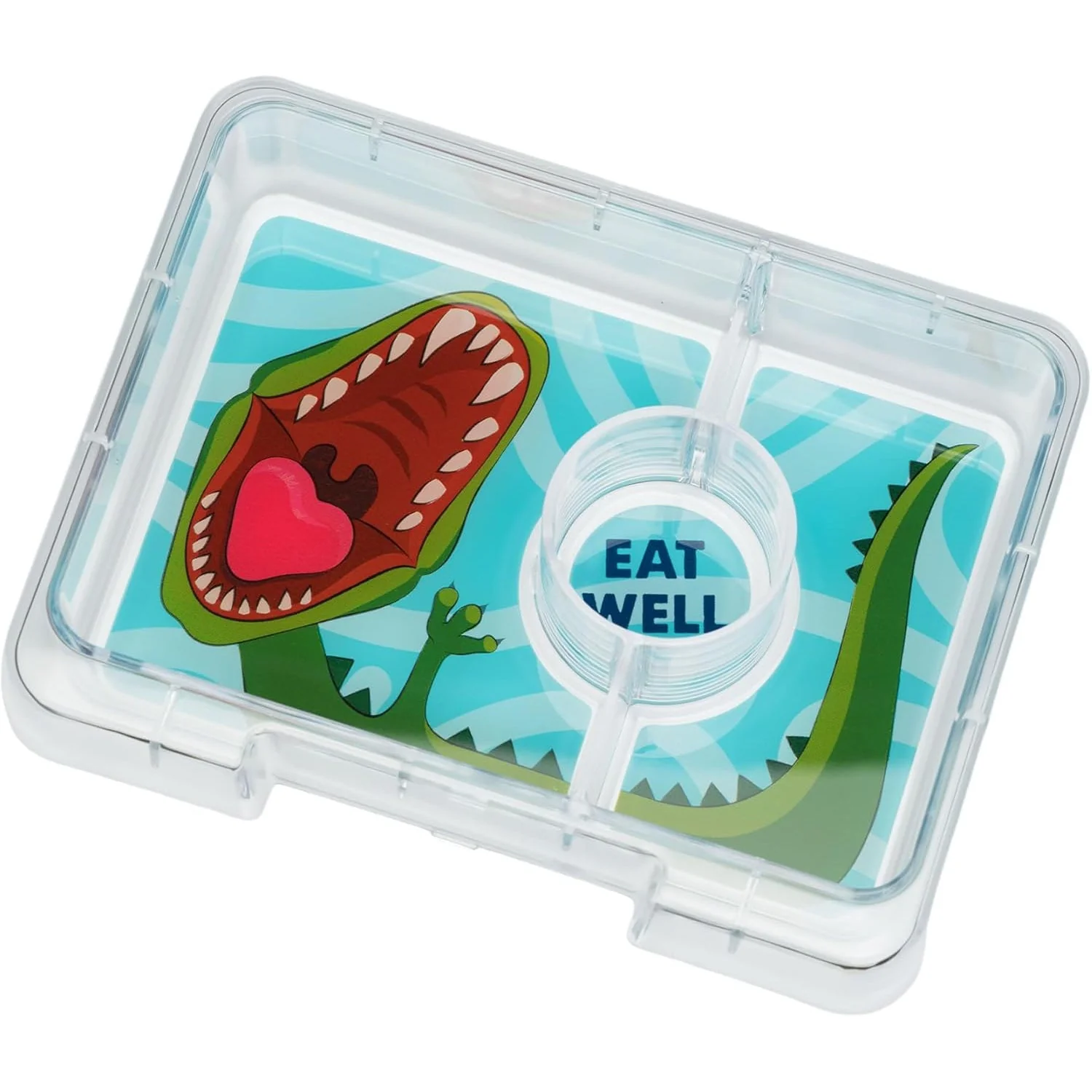 Su bandeja interior extraíble y dividida en tres compartimentos permite combinar frutas, frutos secos, galletas, yogur o salsas sin que se mezclen, manteniendo cada alimento en su sitio. Su cierre con pestaña grande facilita la apertura para los niños, convirtiéndola en la opción perfecta para que lleven sus comidas de forma segura y autónoma.