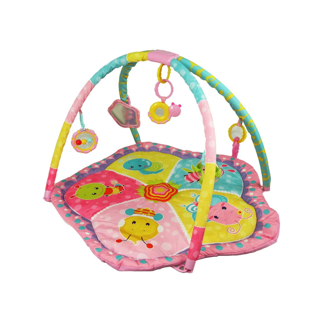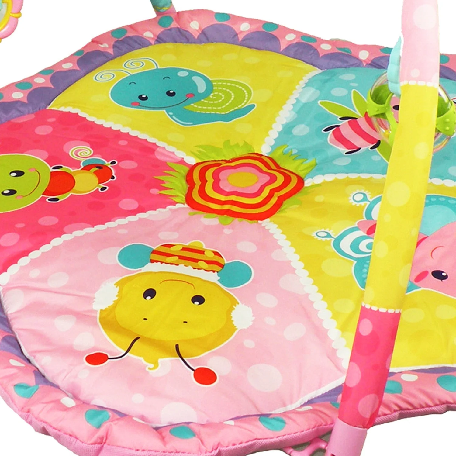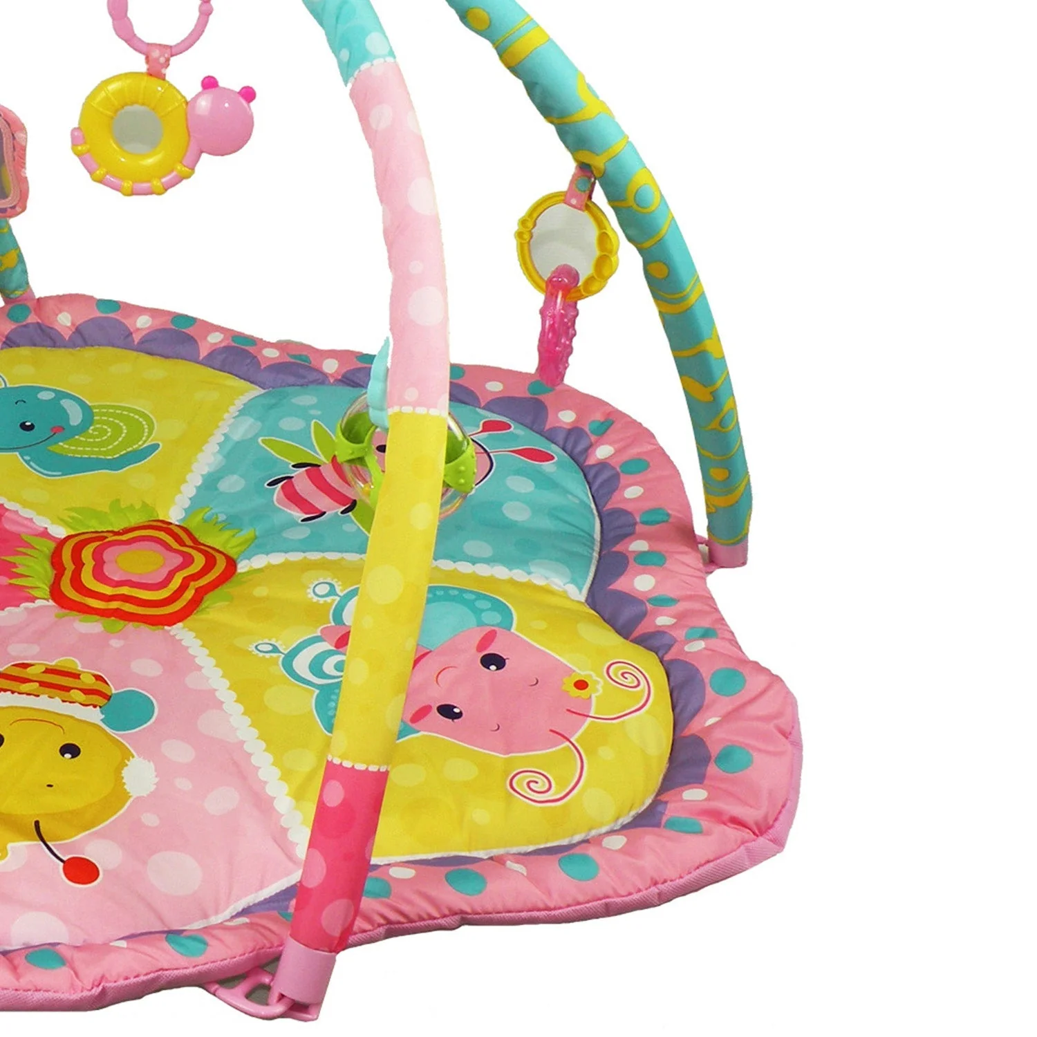 Cuenta con un espejo ajustable que favorece el autodescubrimiento, un mordedor relleno de agua para calmar las encías, un colorido sujetador de cuentas y un anillo sonaja que incentiva la coordinación. Las barras incluyen acolchado blando para mayor comodidad y la alfombra ofrece una superficie amplia y segura para explorar.