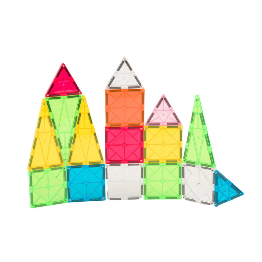 - Piezas: 16 bloques magnéticos en vibrantes colores azul, amarillo, rojo y verde.