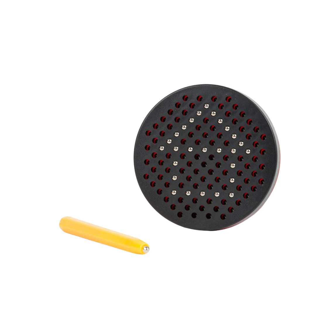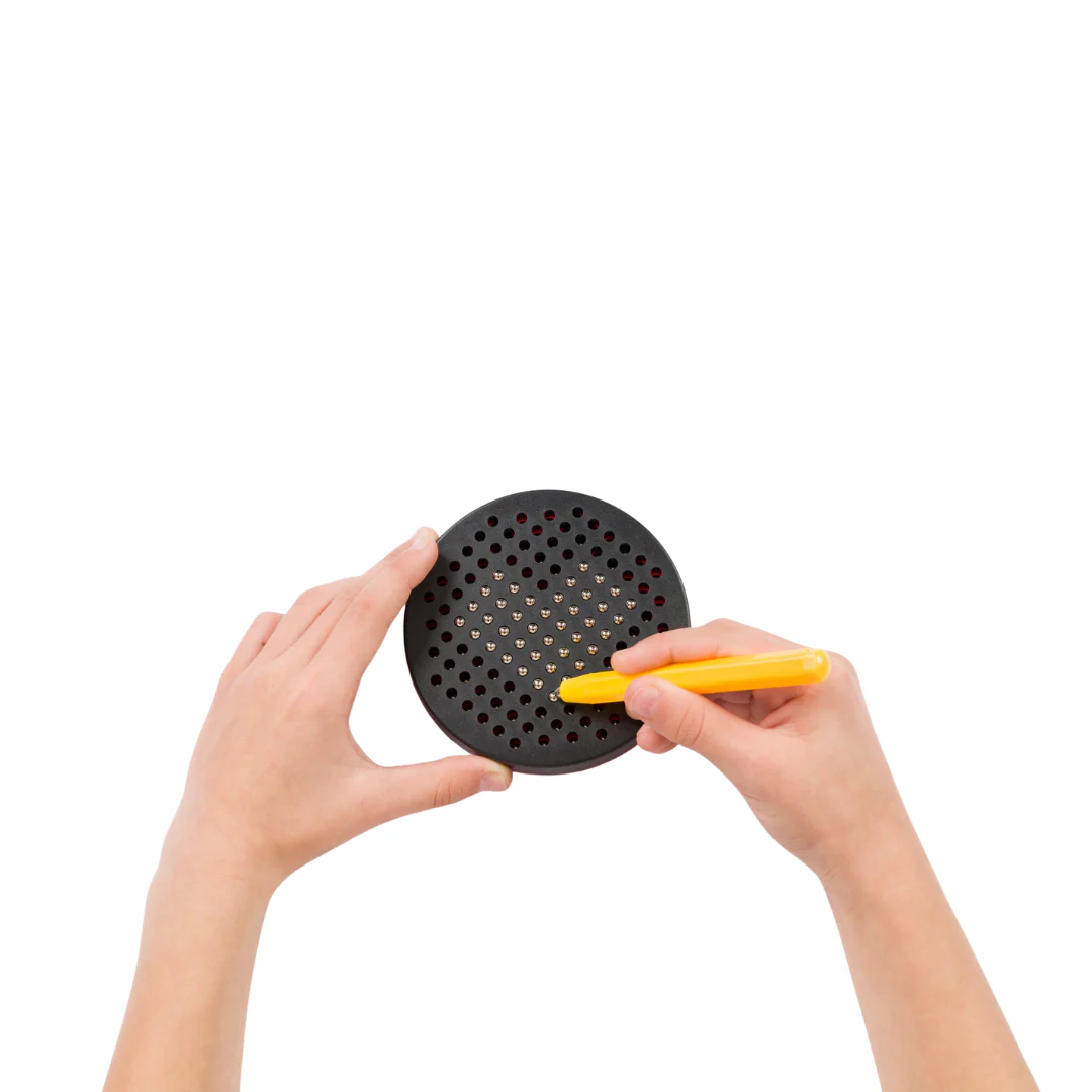- Lápiz magnético incluido: Dibuja o escribe manipulando pequeñas pelotitas metálicas que se levantan al contacto, transformando tus ideas en patrones y diseños únicos.