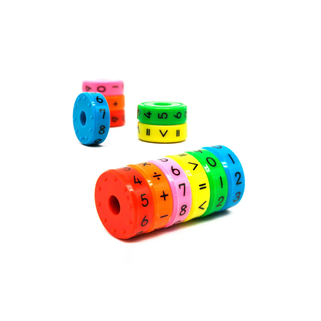 – Diseño funcional y atractivo: Ruedas magnéticas ajustables que permiten visualizar y resolver operaciones matemáticas con facilidad.