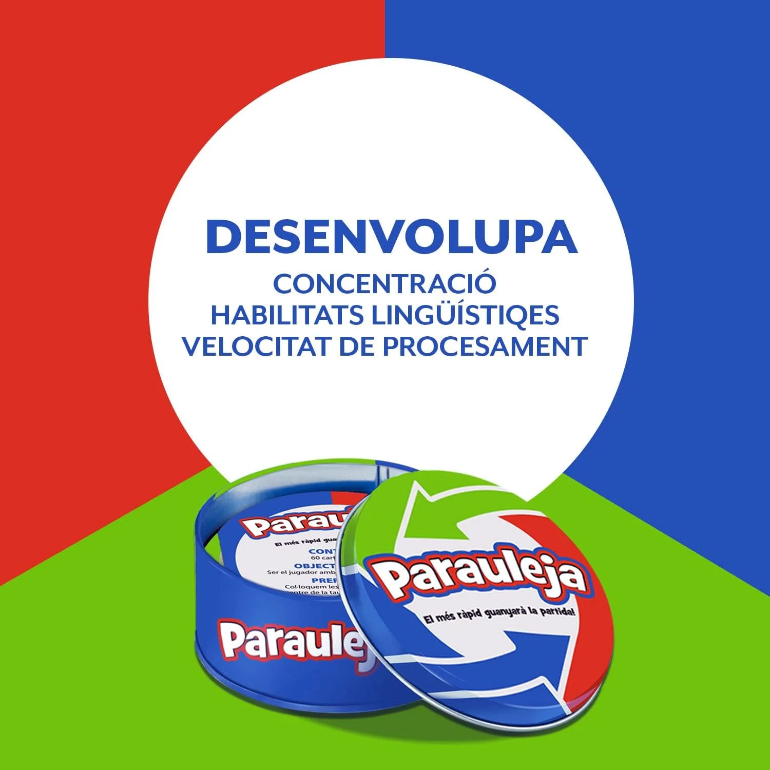 Amb les seves cartes de doble cara, Parauleja és ideal per a petits i grans, perfecte per jugar en família o amb amics. Gràcies al seu pràctic format en llauna, el pots portar a qualsevol lloc per assegurar diversió i aprenentatge en qualsevol moment.