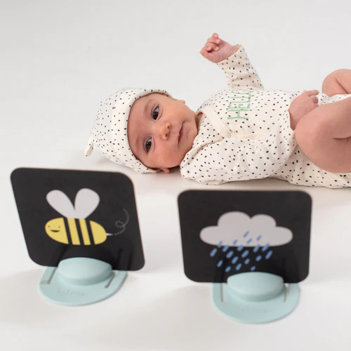 – Etapa 1 0m+: Las tarjetas de colores de alto contraste permiten que el bebé se enfoque en una imagen a la vez y optimice la estimulación. Perfecto para fomentar el giro de la cabeza o la práctica del tiempo boca abajo.
