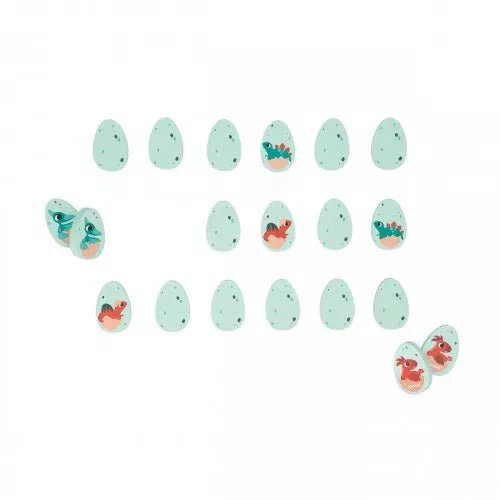 ¡Este es un juego de memoria con un estilo superoriginal! ¡Estos 20 huevos de dinosaurio de madera contienen unos bonitos bebés que buscan a sus gemelos! Ideal para niños a partir de 2 años, ¡el Mémo Dino conquistará a grandes y pequeños porque no hay edad para divertirse y ejercitar la memoria! Este juego atemporal consta de 20 huevos de madera ilustrados con diferentes bebés de dinosaurio. Por turnos, hay que dar la vuelta a los huevos de uno en uno para encontrar dos idénticos. ¡Quien más encuentre gana! Juguete hecho de madera FSC®.