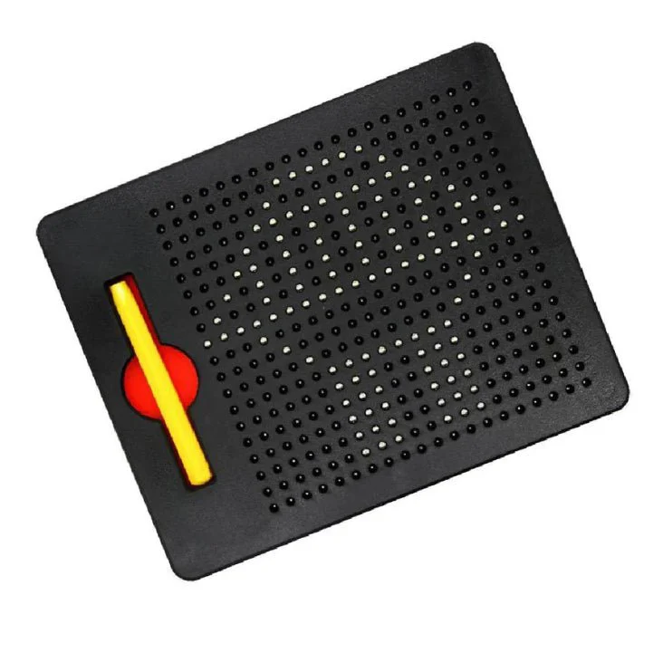 Pizarra o tablero magnético que permite dibujar diseños en 2D gracias a las pequeñas bolitas que suben a las superficie por efecto del lápiz magnético. Las pelotitas cuentan con un sistema de seguridad que las mantiene totalmente protegidas dentro del tablero.