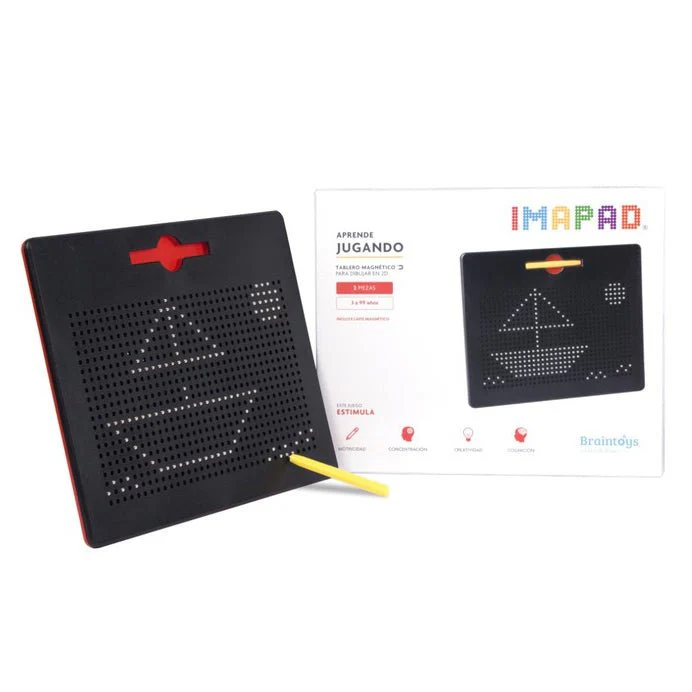 Juego de dibujo magnético que ayuda a desarrollar el área viso-espacial, la motricidad fina, la agudeza visual y es una acelerador de la imaginación y la creatividad.