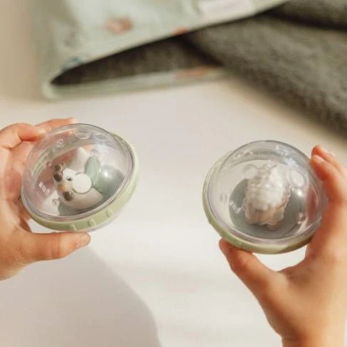 Prepárate para una diversión acuática con estas adorables bolas giratorias de la granja. Las bolas de juego de la granja, llamadas «1,2,3 y empieza a rodar», ofrecen mucha diversión en la bañera para tus pequeños. Incluyen a dos amigos de la granja, una oveja y un pollo, que seguramente serán los favoritos de tu hijo. La pelota flotante es perfecta para manos pequeñas y cuenta con un buen agarre, lo que facilita el juego en la bañera. Además, su tamaño de 6,5 cm es ideal para que los niños de 4 meses en adelante puedan disfrutar de ella sin problemas.
