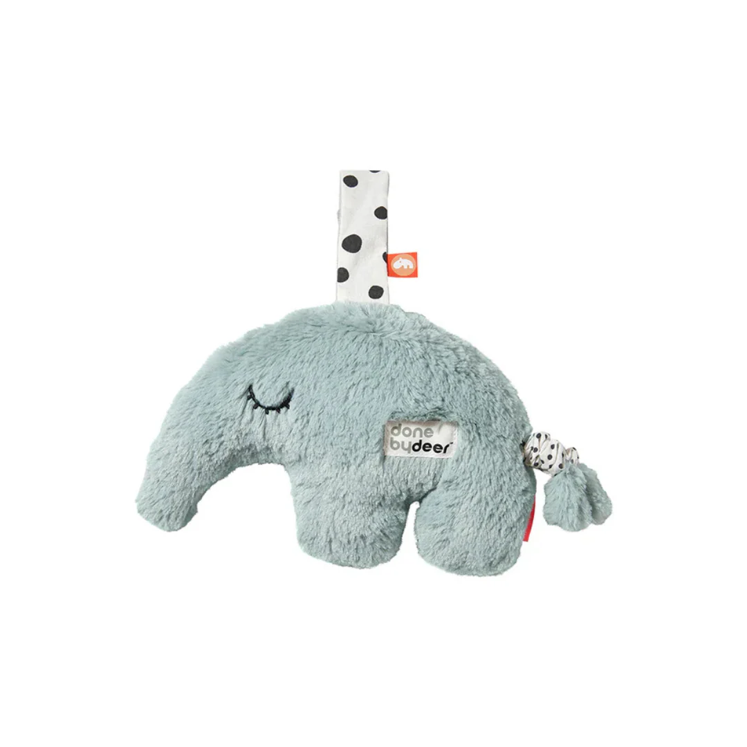 El Juguete Peluche Musical Antee Azul de Done By Deer es el acompañante perfecto para calmar y entretener a tu bebé. Este adorable peluche reproduce la suave melodía «Welcome to our world of toys», creando un ambiente de serenidad ideal para los momentos de descanso.