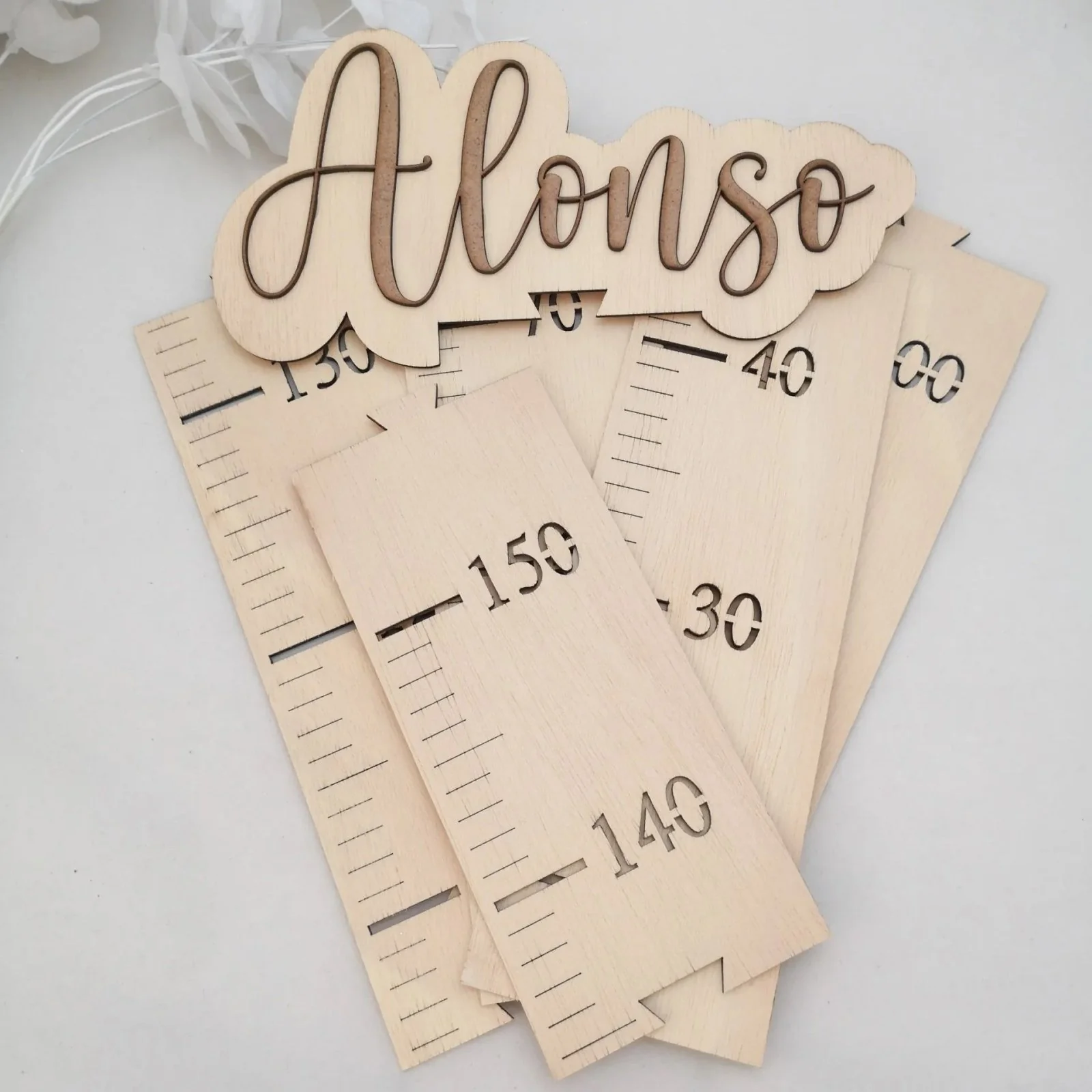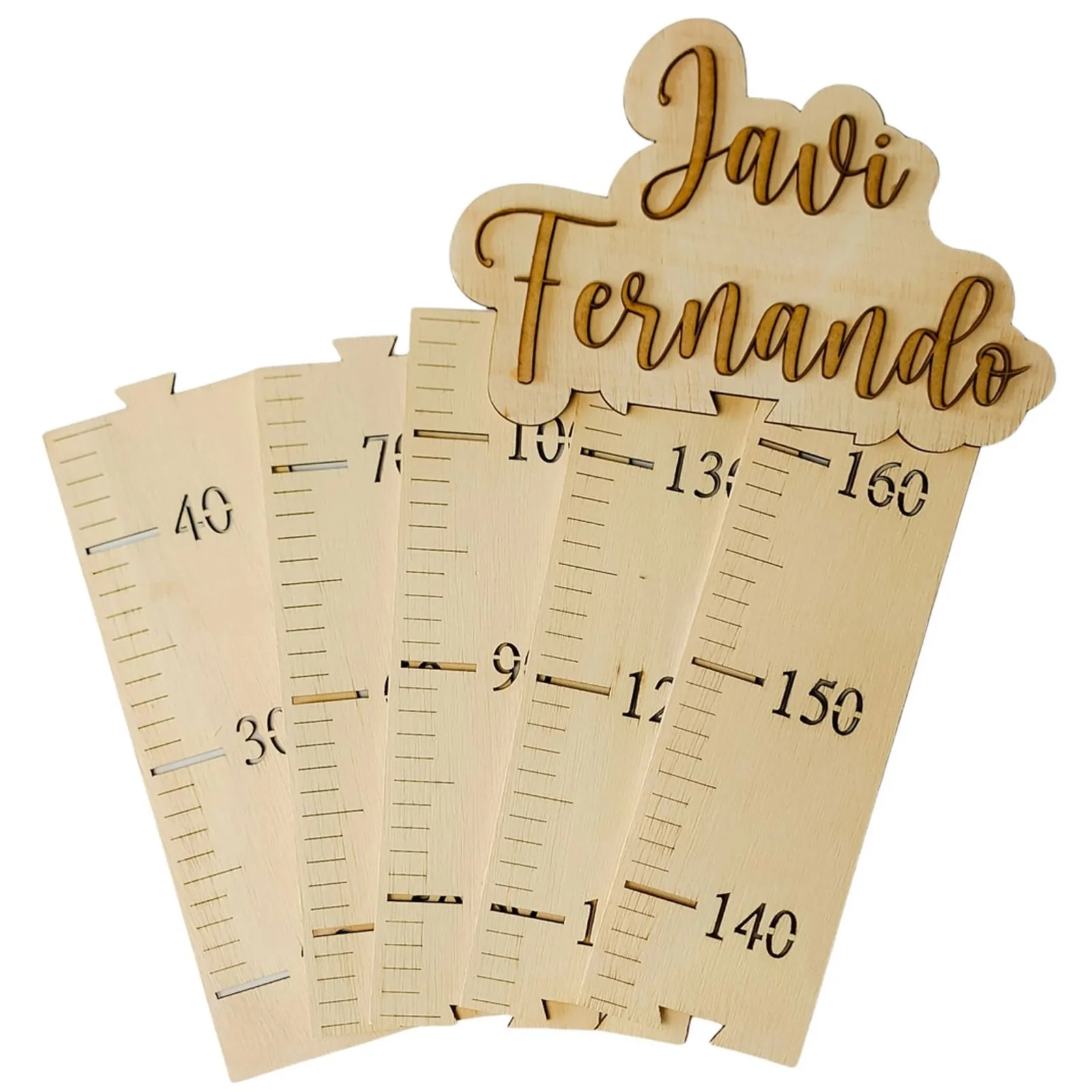 Medidor infantil personalizado de madera tipo puzle para la habitación de los peques. Ideal para que ellos mismos vayan siendo conscientes de su crecimiento y juntos podáis ir marcando su altura en diferentes momentos y comprobar así lo rápido que crecen.