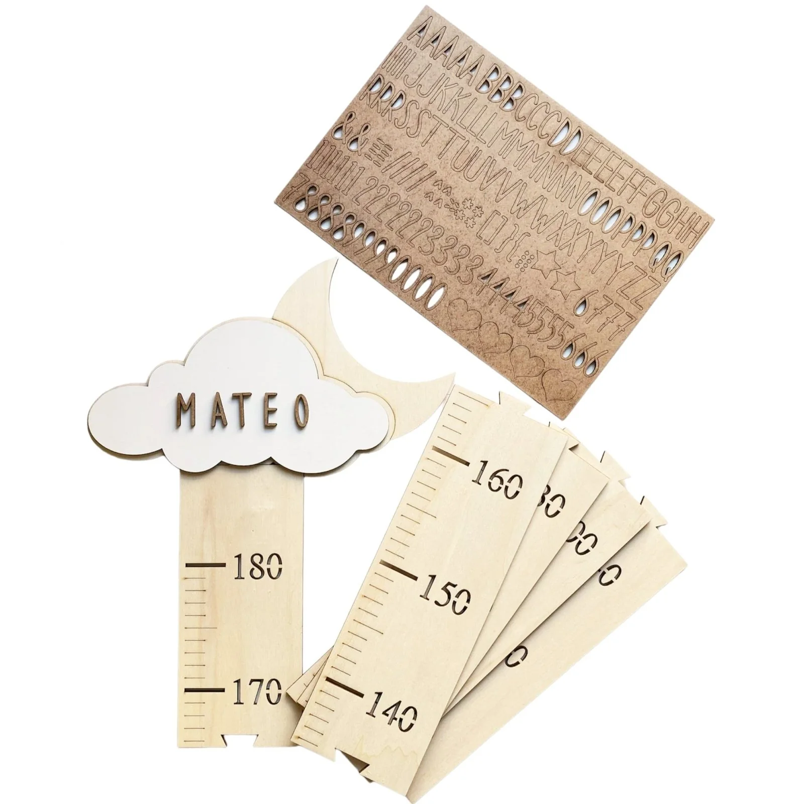 Medidor infantil personalizado de madera tipo puzle para la habitación de los peques. Ideal para que ellos mismos vayan siendo conscientes de su crecimiento y juntos podáis ir marcando su altura en diferentes momentos y comprobar así lo rápido que crecen.