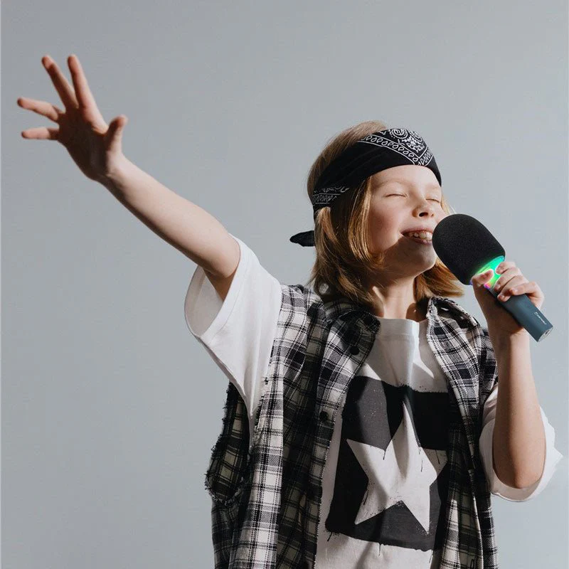 ¡Descubre KIDYMIC, el compañero ideal para tus momentos de karaoke! Este micrófono todo en uno transforma cualquier ocasión en una fiesta musical con sus impresionantes efectos de sonido y luz, cambio de voz y conexión Bluetooth. Tus peques se divertirán durante horas cantando y jugando, creando recuerdos inolvidables para toda la familia.