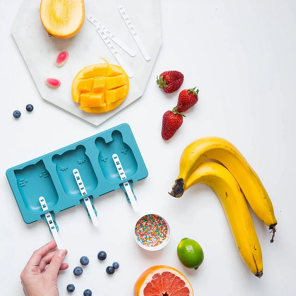 ¡Haz que los días calurosos de verano sean aún más divertidos con estos lindos moldes para helados de We Might Be Tiny! Con las formas de tres personajes —el gato, el oso y el conejito— este molde de silicona es perfecto para crear helados caseros llenos de sabor y creatividad.