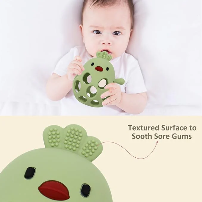 ¡Alivia las encías de tu peque con nuestro encantador mordedor de silicona en forma de pollito! 🐥