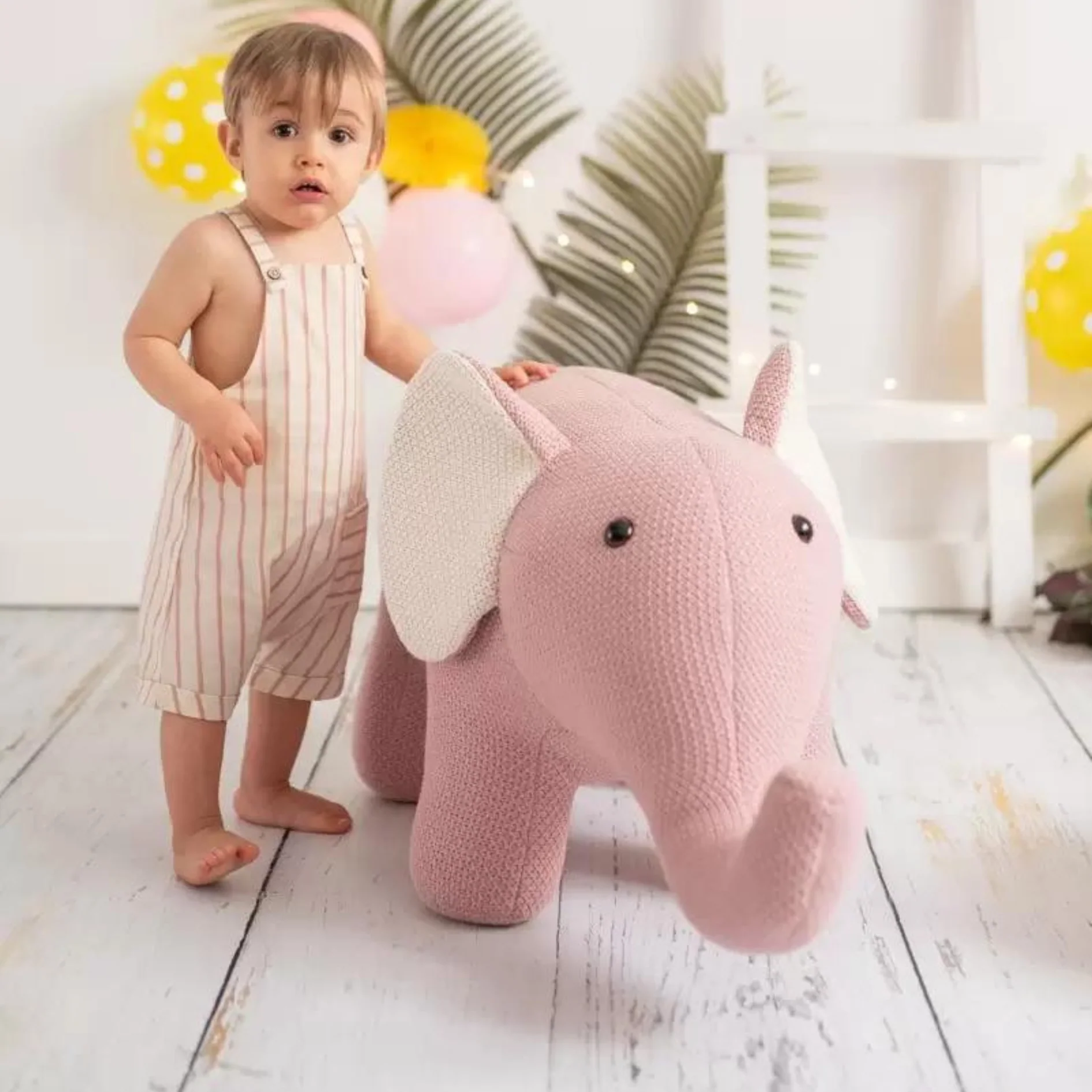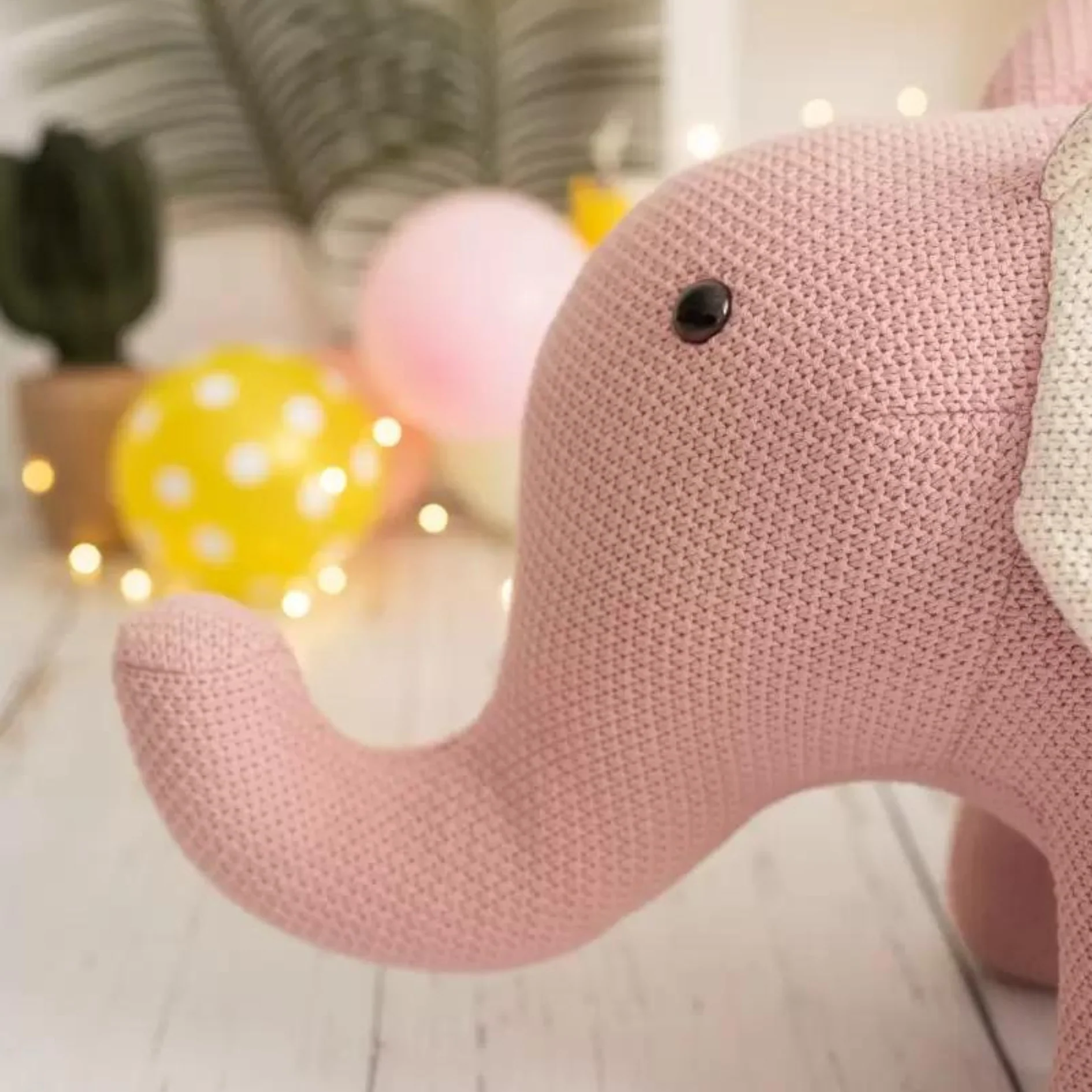 El adorable Elefante de Crochet de la marca Crochetts está hecho a mano con algodón 100% natural, hipoalergénico y muy suave al tacto, en un delicado color rosa con orejas en blanco roto. Cada detalle ha sido cuidadosamente bordado, lo que lo convierte en un compañero ideal para los niños o un hermoso elemento decorativo para habitaciones infantiles.