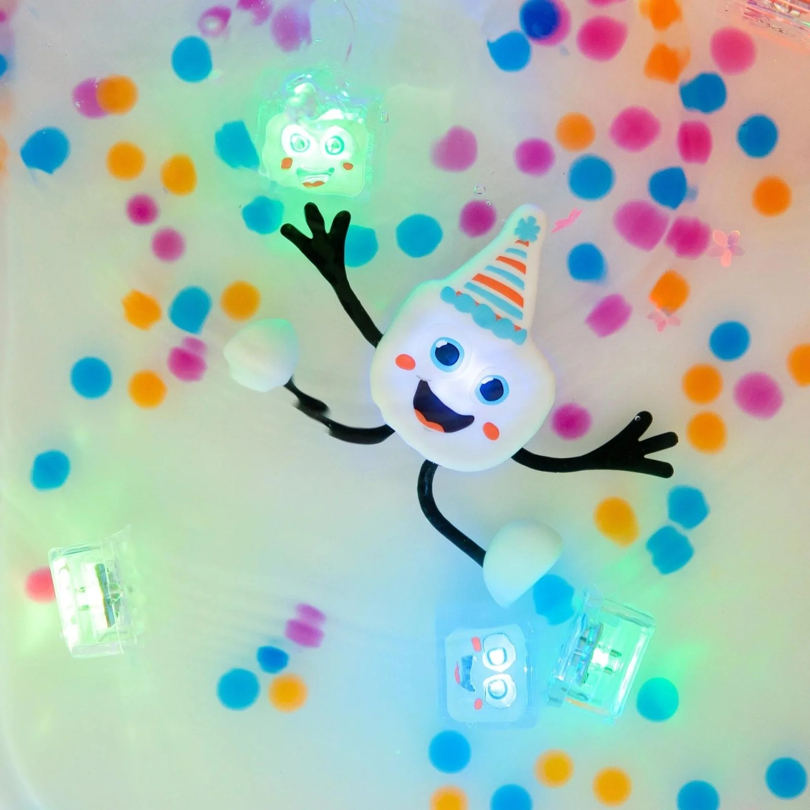 PERSONAJE Y 2 CUBOS DE LUZ PARA EL BAÑO GLOPALS ·PARTY MULTICOLOR·