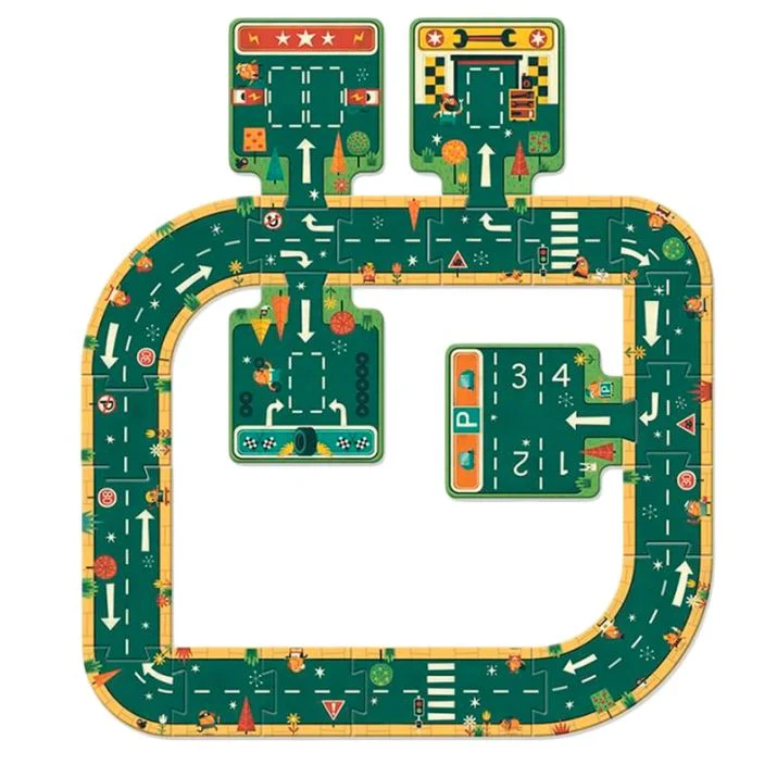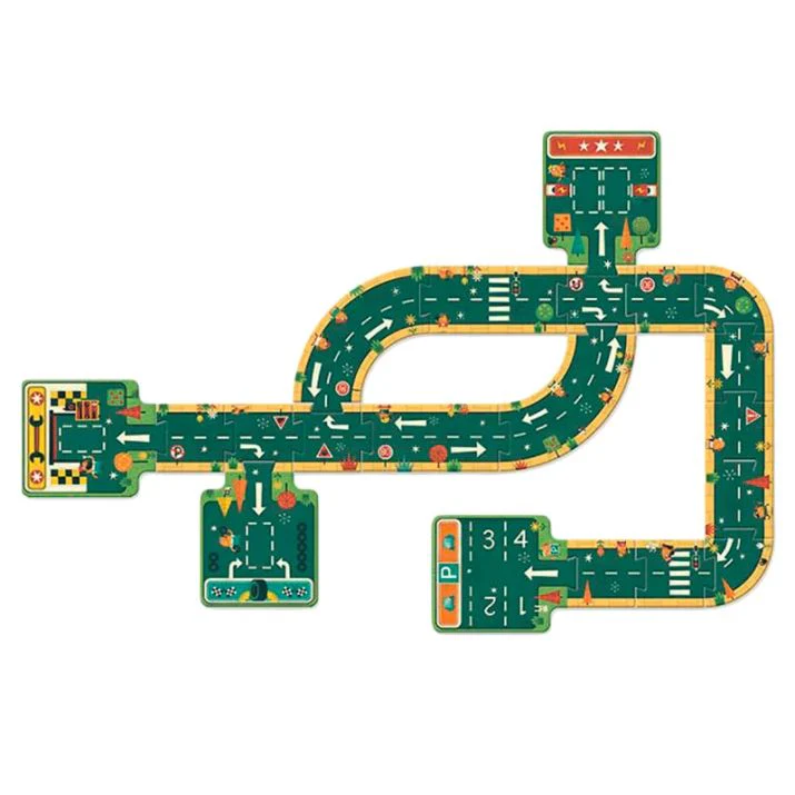 Ideal para peques a partir de 3 años, este puzle gigante de 21 piezas permite construir hasta 5 circuitos diferentes para jugar con sus cochecitos favoritos. Fabricado en cartón resistente, con piezas grandes y fáciles de manipular, este juego fomenta la creatividad, la coordinación y el juego simbólico de forma divertida y segura.