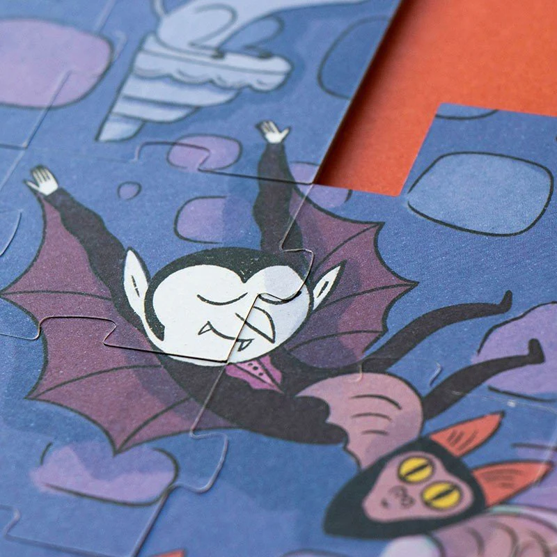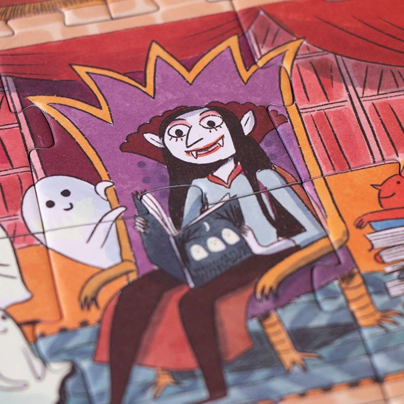 ¡Uhhhh! ¿Te atreves a entrar en el castillo encantado? Con Enchanted, tu peque se adentrará en un universo mágico lleno de monstruos, murciélagos y fantasmas… ¡pero nada espantosos! A medida que se colocan las piezas de este puzzle reversible, se descubre que estos personajes misteriosos son en realidad amigos con muchas ganas de jugar.