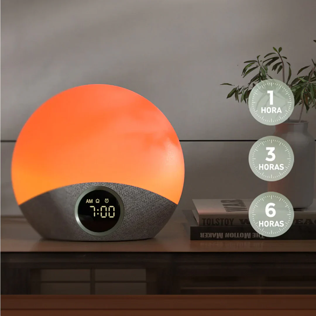 - Luz de amanecer gradual para un despertar suave y natural.