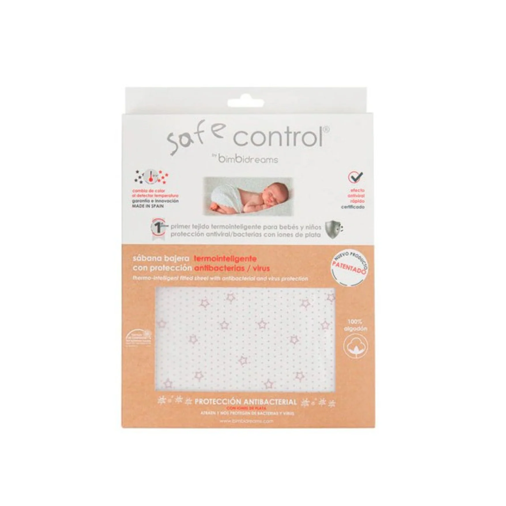 La sábana bajera termointeligente de la marca BimbiDreams es un innovador protector 2 en 1 para cunas. Diseñada con una tecnología termocromática, cambia de color cuando detecta que la temperatura del bebé supera los 37,5ºC, alertándote de posibles fiebres o golpes de calor. Esta sábana no solo cuida de tu bebé, sino que también lo protege contra virus y bacterias gracias a su tratamiento con iones de plata (BeSo®GUARDED), que elimina el 99,9% de patógenos en minutos.