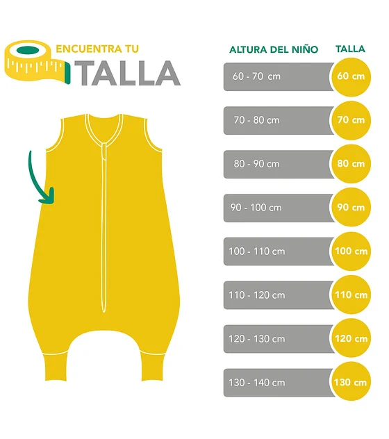 – Talla generosa: los sacos son amplios, por lo que se recomienda elegir según la altura del niño.