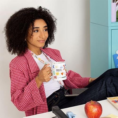Taza súper divertida llena de color para honrar el trabajo y la bendita paciencia de nuestros profes guays, que tienen el trabajo más importante del mundo.
